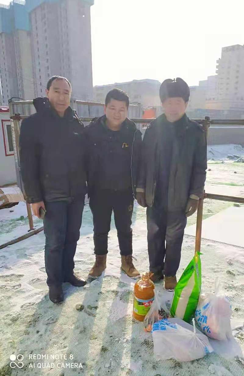 春節(jié)將至,所有工程項目均已停工,為了項目的春節(jié)期間的安全,每個項目都留有2名同志值班。2月19日上午,領(lǐng)導(dǎo)班子主要成員深入各項目,看望、慰問春節(jié)期間依舊奮戰(zhàn)的一線員工,為他們帶去春節(jié)禮物和新春祝福,為員工帶來溫暖。